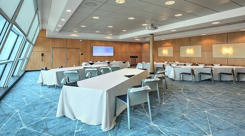 Realize as suas reuniões com serenidade e elegância no nosso espaço de última geração, com capacidade para acolher até 200 participantes. Este centro de conferências moderno e funcional oferece-lhe todas as comodidades de um escritório, aliado a vistas deslumbrantes de céus azuis e do mar tranquilo.
