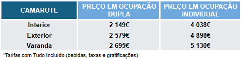 Portos de Escala: Lisboa, Portugal; Lanzarote, Ilhas Canárias; Tenerife, Ilhas Canárias; Philipsburg, St. Martin; Charlotte Amalie, St. Thomas; Miami, Flórida