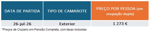 – Entre 119 e 60 dias antes da data de partida: €330 por camarote