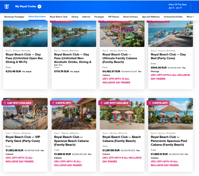 - Camarotes na Royal Caribbean