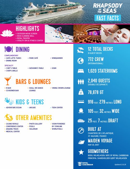O Rhapsody of the Seas® é o cenário ideal para uma viagem cheia de aventura e momentos inesquecíveis. Vive tudo ao máximo — a bordo e em cada paragem.