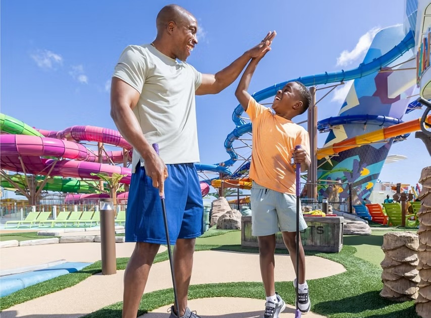 Passe o dia a brincar no bairro de Splashaway Bay℠, ideal para crianças, com aventuras para todas as idades e bebidas para todos os níveis de descontração. Entre no Water’s Edge para desfrutar de vistas infinitas da piscina na parte de trás do navio e desfrute de um cocktail cuidadosamente preparado no The Lemon Post℠. Supere a concorrência e vá ao salão de jogos para se abastecer com os pratos favoritos da família no Surfside Eatery℠.